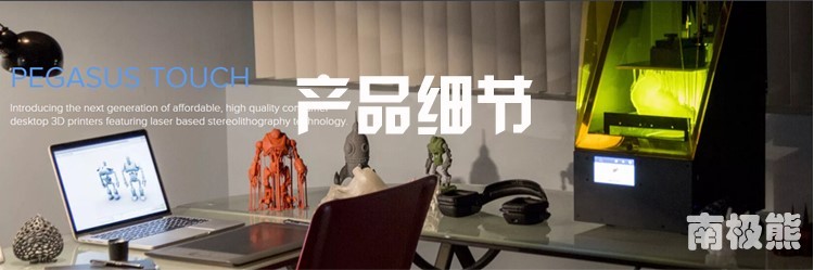 其实桌面SLA除了很大体积的模型没办法(除非分割模型拼接),工业机能打的一样可以完成任务。今天给大家带来的是目前市场上成型尺寸最大的桌面式SLA打印机,Pegasus Touch,单老师作为核心人员,全程参与了这款机器的研发,试制,和量产。先来看一下这款机器的颜值: