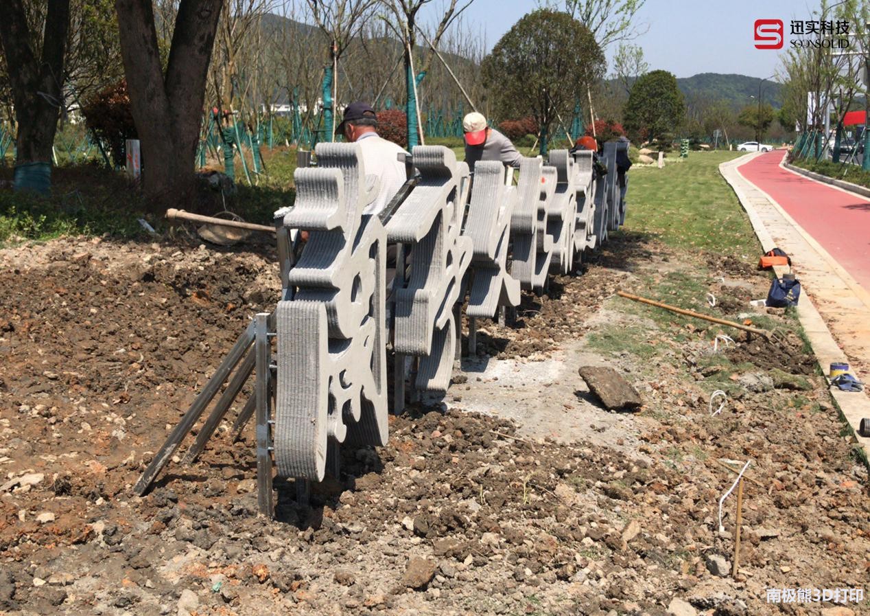 据迅实科技项目负责人介绍,迅实科技已经多次承接建筑打印项目,凭借迅实科技成熟的建筑打印技术及丰富的打印经验,此次的兰亭项目从确认方案至打印制作,再到安装上色,总耗时长仅为2周时间,而且,不同于石刻字体的平稳,王羲之字体的韵味通过3D打印展现的淋漓尽致,远远望去便能感受到其书法的遒劲秀和。