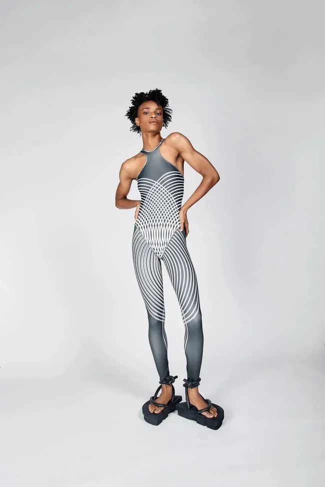 他们与日本数字印刷公司Mimaki合作,设计制作的易于穿着的束腰外衣和打底裤,其上的杏仁形状在兼顾艺术感和实验性同时,以三维的形式呈现出服装融合着现代审美。