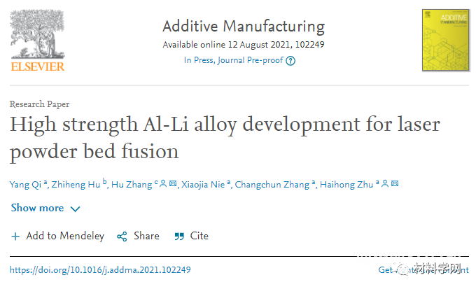 2195 铝锂合金的 LPBF 相比,这种新型合金具有更高的构建效率并降低了锂损失率。相关研究成果以题“Highstrength Al-Li