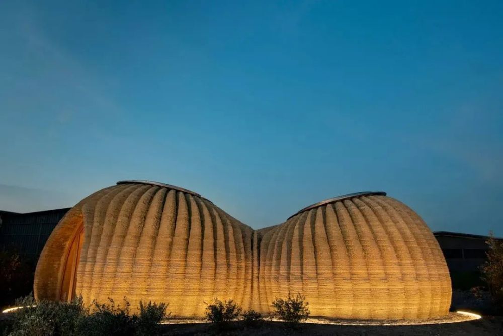 该建筑体使用 3D 打印机创作模块,打造由天然材料粘土、沙子和原生纤维制成的生态住宅空间。