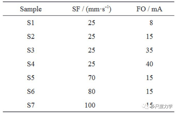 表1展示的是通过调整SF和FO,制备的7 组Ti-Ni 合金样品,S1~S4前4组样品具有相同的SF,FO逐步提高,S2,S5~S7后三组样品具有相同的FO,SF逐步提高。