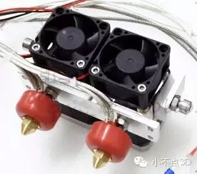 另一种是Budaschnozzle;这种喷头有主动散热和被动散热两种方式,MK7喷头就是采用这种结构的主动式散热。makebot 、reprappro的机器都是采用这种喷头结构作为默认结构。