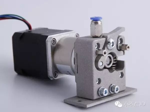 直接挤丝:步进电机直接接个挤丝轮进行挤丝,这需要用较大扭矩的步进电机。这种结构的优点在于结构简单好维护,但是不适合长距离挤丝(喷头和挤出机之间的距离比较长,有些打印机为提高精度,会尽量减轻喷头的重量的,则需要将挤出机放在机身上,喷头到挤出机之间通过聚聚四氟乙烯管作为导管的,最好用齿轮挤出机)。