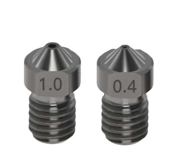钒喷嘴由高速钢和钒合金锻造而成,可打印磨料(例如 NylonX、NylonG、金属填充物或夜光 PLA),而无需担心喷嘴磨损。
