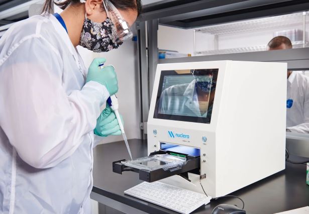 △一位使用 Nuclera 3D 生物打印机的科学家。图片来自 Nuclera。