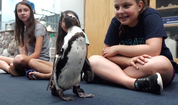 据Mystic水族馆的工作人员们说,几年前Purps的左腿因和另一只企鹅打架而受伤。兽医在检查伤势后发现Purps脚踝的屈肌腱撕裂了,将无法正常走路。从那时起,尽管兽医尝试多种方法,比如手工制作适当的支撑引导(一个非常耗时的过程)等,但Purps从来没有完全恢复行走和正常移动的能力。