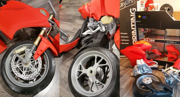 Lay3rs由摩托车爱好者经营,他们过去曾经3D打印出杜卡迪的微型车型。 他们一收到Builder Extreme 1500,就产生了一个想法:“让我们再打印一个,但更大!”事实上,这是一个真正的大小。 Lay3rs团队马上就开始使用Simplify3D准备一个3D模型,并使用0.4和0.8 mm喷嘴花了近780小时将其打印成一个巨大的机车模型。 打印完成后,Lay3rs明亮的红色机身,不需要涂装 - 从红色底盘到银色轮胎轮圈到金色气帽的每一个部分都很完美,只附加了几个贴纸 增强其外观视觉冲击。
