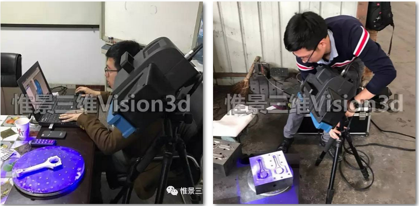 在采用惟景三维提供的PowerScan-Pro 1.3M工业级光学三维扫描仪对连杆毛坯件和配套模具进行检测,与采用三坐标、游标卡尺和千分尺等常规检测方式相比,光学三维检测方案实现: