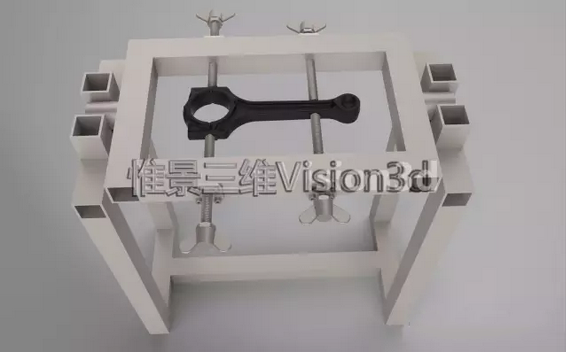 第一步:在惟景三维配备连杆专用夹具表面粘贴标志点;