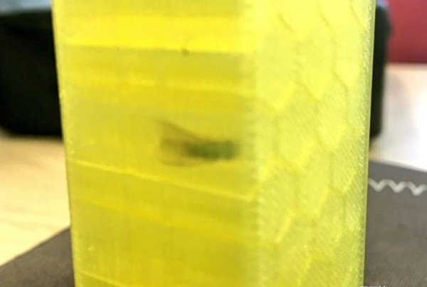 Jewell一直好奇苍蝇为什么会飞入他正在打印中的物体里,也许答案就在物体的设计本身。当时,他正在打印一个蜂窝状结构,也许苍蝇认为自己探索的是蜜蜂制造的东西。无论怎样,苍蝇一飞进去,就踏上了死亡之路。