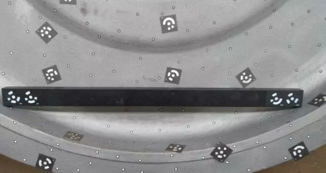3.用专业相机围绕轮毂多角度拍照,并将拍摄的照片导入到天远三维摄影测量系统软件DigiMetric中进行计算,快速获得轮毂表面所有标志点的三维坐标框架数据,框架点的计算是为了控制后续扫描全局累积误差,让扫描更精确。
