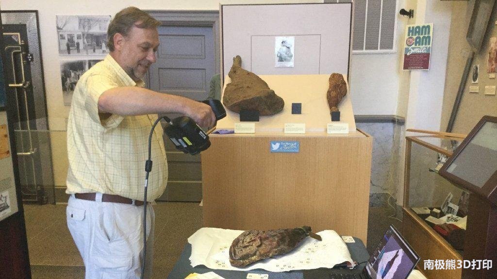 弗吉尼亚州史密斯菲尔德镇是美国一个出名的旅游景点,原因是这里有115年历史的火腿。2018年7月5日,南极熊从外媒获悉,弗吉尼亚联邦大学的老师学生们将这个火腿进行了三维扫描,并3D打印出一个同样的模型用于在博物馆中展示。实际上,在文物领域中使用三维扫描和3D打印的技术已经非常多,很多我们在博物馆中看到的文物实际上也都是复制品。