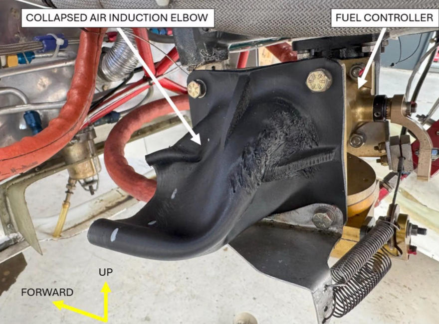 报告指出:“机主称,由于这款碳纤维增强ABS材料标称的玻璃化转变温度高于环氧树脂,因此在安装时,他认为该零件完全适用于这一工况。然而对‘舒适Mk IV’图纸中传统层合式进气弯管的设计审查显示,其弯管进气端(即空气滤清器连接处)设有一段薄壁铝管,该铝管可为弯管进气端提供一定的、不受温度影响的结构支撑;而涉事飞机G-BYLZ上的3D打印进气弯管,其进气端并未配备此类铝管支撑结构。”