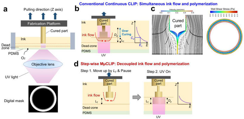 △概述MµCLIP 3D打印方法与传统CLIP的比较