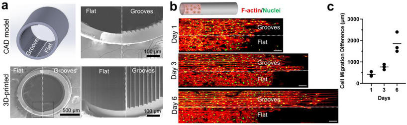 △具有20 µm沟槽的3D打印管状支架加速了内皮细胞 (EC) 的迁移