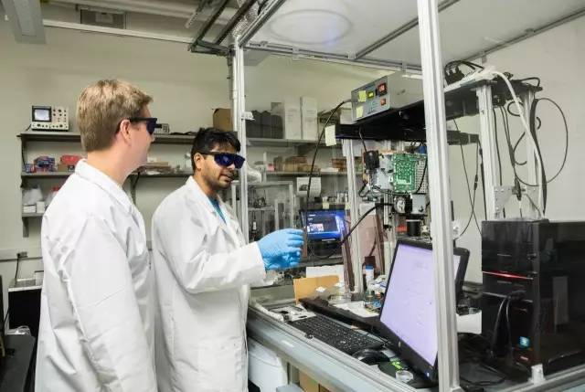 图片:Goodwin Hall的DREAMS Lab实验室,副教授Christopher Williams和博士生Viswanath Meenakshisundaram在3D打印设备前