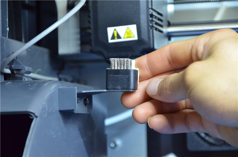 特制的丝料刷除装置,很大程度上避免丝料粘附在喷嘴上,保证模型打印的质量。