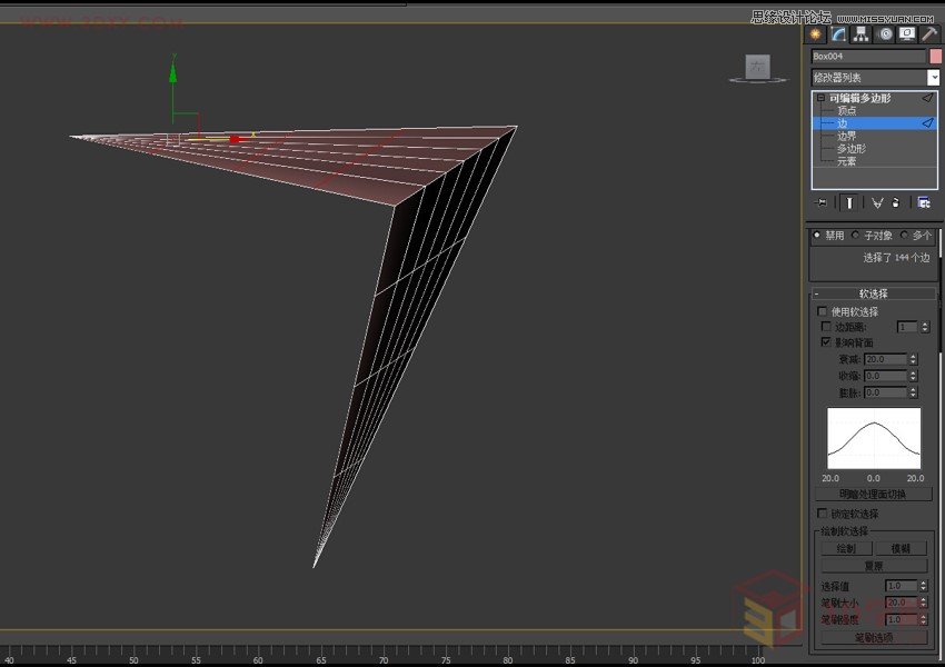 把box转换成可编辑多边形,只留下顶面和侧面的一个面,其余的面删除,然后进入左视图进行调节。