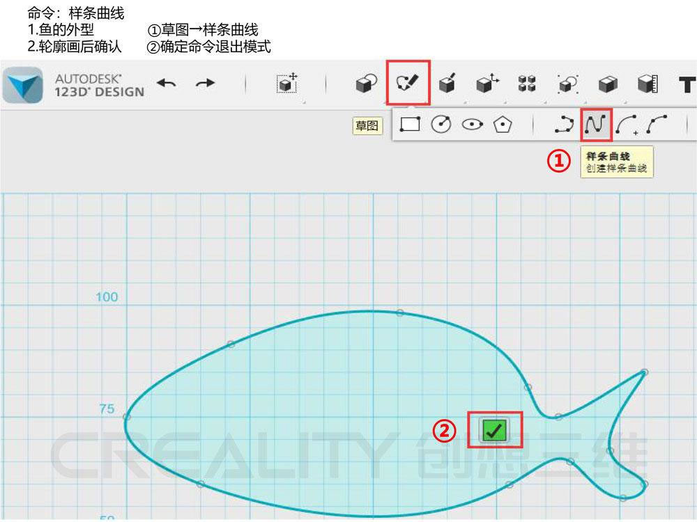 2.选择向下 ②拉箭头向下,矩形比鱼身厚