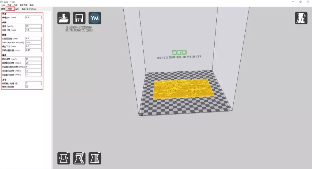 第六步:尺寸设置好了之后,就可以开始进行切片参数设置了,这里我的一些参数都是之前设置好的,特别需要注意的是填充要设置成100%,保证模型实体,这样打印完后观赏性更佳。