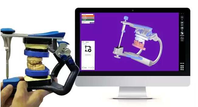 AutoScan-DS300牙科三维扫描仪可支持功能颌架扫描,能精确实现咬合关系转移。