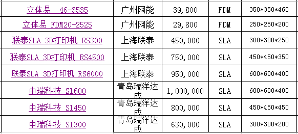 第二大类:DLA.SLA桌面级3D打印机价格价位预览