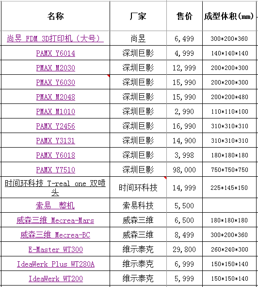 第一大类:民用化FDM桌面级3D打印机价格价位预览
