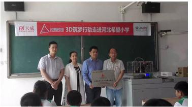 天威耗材“3D筑梦行动” 志愿团队负责人表示:“目前,北京和广州一带已经开始在中小学普及3D打印知识了,有些学校还开有相关课程学习。3D打印技术在国外发展已经相当普遍了,但是国内3D打印这项技术还有很多人完全不了解。未来,我们希望3D打印的科技魅力将给校园带来神奇的变化,前沿的技术将会激发学生的探索欲望,锻炼学生的实践能力,培养学生的创新精神。所以,“3D筑梦行动”具有十分重要的意义。在这里,我们动员和鼓励我们家乡保定的孩子们从小崇尚科学、热爱科学;同时,我希望更多的企业和个人能够一起加入“3D筑梦行动”中,让3D打印走进每一家在偏远山区的学校里,让更多的孩子能够更早的接触到3D打印技术和知识。”