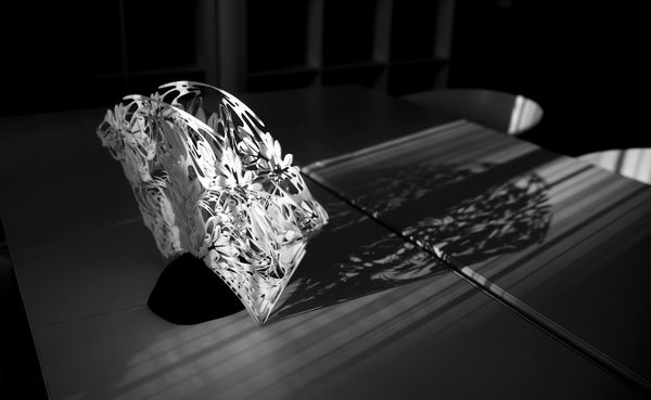 Steven Ma的极致盛放工作室则在金属材料的3D打印领域不断发力。他表示,目前全球范围内的直接金属打印技术已经相当成熟,这项技术能够更加完整地体现细节,精度极高,几乎不需要任何后期处理。最近推出的作品中,灵感来自元宵节女子佩戴的发髻额饰的“Lunamoth”系列就采用了这项技术。