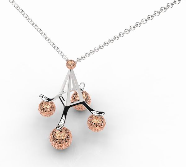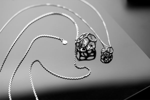 “上一代的批量化珠宝制造,首先是专业的设计师先画一个平面图,再经由建模师去创造一个模型出来,很多原本设计师脑中的细节和本意可能就在这个环节消磨掉了。而3D打印技术完全跳过了这个环节,实现设计师思维的精准再现。”云迹创意设计公司的设计总监赵曦辰也深受建筑设计的影响,在“月色”系列与“摩天轮”系列中,立体的网络线条相互交叠,构建出复杂而极具几何规律的雕塑型珠宝。
