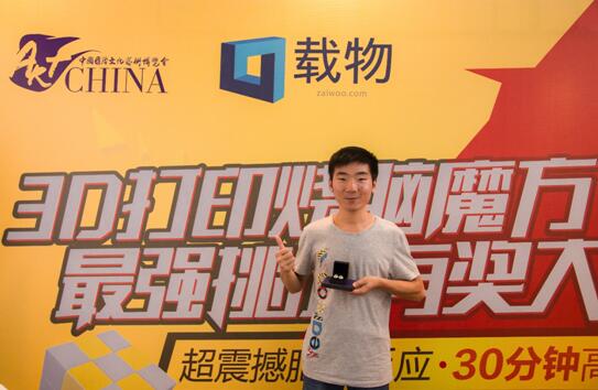 虽然这立方体游戏难度极大,但是不乏有高人。三天的展览中,最快将其拼接完成的是一位小伙子,用时2分钟!拼不出来的同学现场表示想拜师,一时 间搞得这位小伙子脸都红了。更有意思的是,这位小伙子是周边展位的一名工作人员。可见载物在整个艺术博览会中的受欢迎程度,能把同行们都拽过来,这吸引力 也是没谁了……