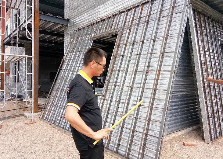 据介绍,施工方先将整栋房的所有构件在工厂按图纸制作后在现场装配,再用混凝土泵机将混凝土按3D打印技术原理浇筑到构件内。整栋房一次成型,不需要大量的人力和物力,也不需要拆卸建筑模板。 “这样建房的成本每平方米约为600元,如果建的楼层更高,成本更低。”温玉荣说。