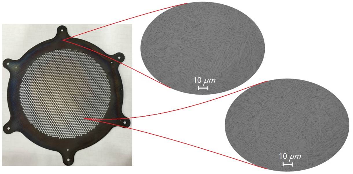 通过测试3D打印Ti64筛网局部微观结构可发现,无论是筛网边缘还是网孔连接处,组织都非常致密、均匀,打印精度符合设计精度要求,这为离子推进器发动机源的成功点火和稳定工作提供了保证。