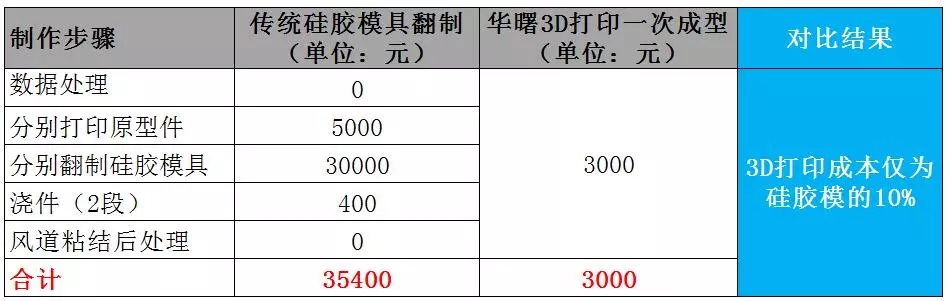 当小批量样件试制时,采用3D打印技术,相比传统的硅胶模工艺,汽车后排吹脚风道样件加工周期缩短95%,节省成本88%,并且能够实现快速修改设计方案并反复大量迭代,在确保原型产品设计质量的同时,大大缩短了产品设计和原型开发所需的时间,提高了研发效率。