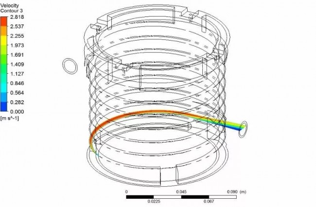通过对水流的模拟,工程师不断改进设计方案,并对冷却水套再设计,最终得到合适金属3D打印的三维模型。