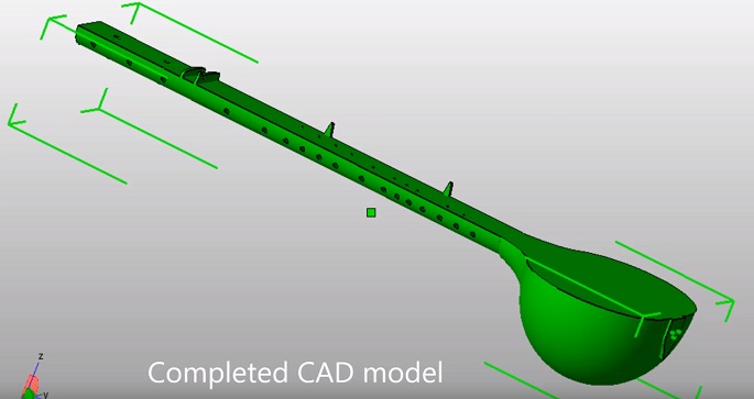 西塔琴的独特性质,为3DLI在复制这款乐器并试图保持其典型音质时带来了一定的挑战。据3DLI团队的一名成员介绍说:“我们都很有兴趣完成这一挑战,以验证像西塔琴这样独特的弦乐器是可以3D打印并且能够保持其独具特色的音质和音色的。”据中国3D打印网了解,这把3D打印西塔琴的琴体模型是通过逆向工程获取的,然后制作团队在此基础上通过CAD软件设计而成。除此之外,制作团队继续解释说:“这个模型是分成不同的部分3D打印的,因为它长达1.2米,大部分3D打印机的打印尺寸大约在30厘米左右。”打印完成后,所有的部件被焊接在了一起。