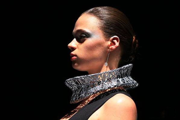 今年时装周增材制造的可穿戴衣物可不只有3D打印礼服,因为加拿大设计师Daniel Christian Tang三人与其最新的3D打印珠宝系列,刚刚在一天前登上了多伦多时装周在David Pecaut 广场的红毯。