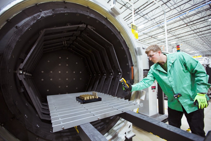 打印完毕后,工程师需要把金属部件放入充满氮或氩气的一对固化炉里