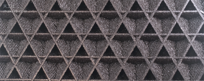 和这类结构最接近的比较就像石墨与金刚石之间的差异。这两种材料都是由相同的元素——碳构成。石墨的物理结构是很合理的,石墨烯的单原子层结构产生了一种相对较弱的材料。另一方面,金刚石具有真实的3D结构,是人类已知的最坚硬的材料之一。虽然为3D打印物体的填充添加3D结构不会让物体更结实,但它将大大减少分层,并且在所有三个维度上更能耐受压力。