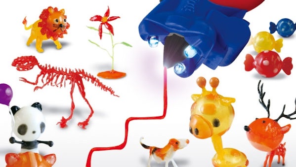 万代南梦宫集团旗下从事玩具销售等业务的Mega House公司于2016年11月推出了新款玩具“3D Dream Arts Pen-Air Up Starter Light Set”,该玩具可一边吐出树脂一边用可视光线灯凝固树脂,就像在空中绘画一样制造立体物品。操作时组合使用该公司的笔状树脂墨“3D Dream Arts Pen”,利用3个LED向笔尖集中照射使树脂硬化的光线。由于使用不发热的光使树脂硬化,因此既安全又方便。“3D Dream Arts Pen Air Up Starter Light Set”由安装在笔上的灯以及专用喷嘴、说明书组成,售价为1280日元(不含税)。
