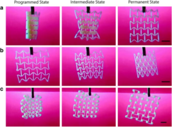 科学家们表明这些材料不仅可以适应和恢复原状,而且可以表现出高达百分之二百的变化。这一切在“大型变形4D辅助结构”文章中都有解释。文章解释了由于热激活变化复杂几何形状如何改变。这些3D打印的超常材料把通过实验特征获取的热粘弹性材料性质扩展到4D领域。
