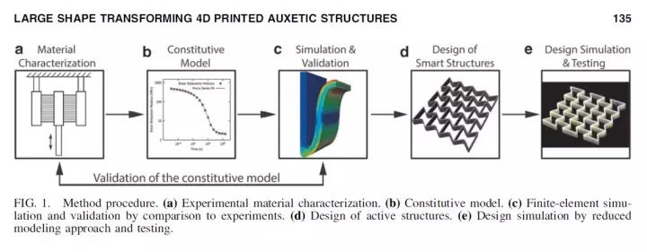 ETH的研究人员先是表征3D打印塑料材料的热力学性质。 然后使用实验数据构建线性粘弹性本构模型。 结合这个本构模型的仿真通过三点弯曲试验来进行验证。 接下来,研究人员设计不同的模型来模拟、制作和测试活性材料的各种形状转换。