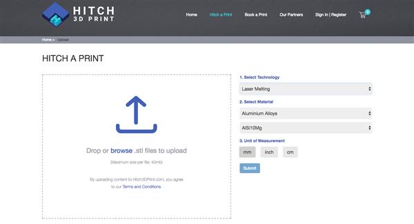 初创公司的过程似乎非常简单。用户只需将.STL文件上传到在线平台,选择他们喜欢的金属3D打印技术(激光熔融或电子束熔化)以及他们所需的金属材料,Hitch3DPrint将生成即时报价。