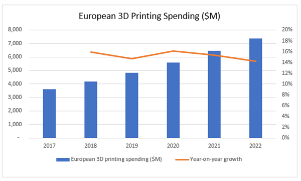 IDC预测欧洲3D打印支出将在2022年增长至近74亿美元