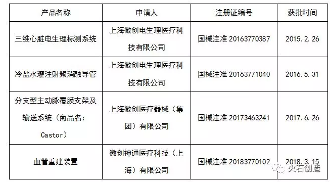 创新产品:截至2018年12月,微创医疗及其子公司已有14个产品进入国家创新医疗器械特别审批程序,其中已有4个产品获批。