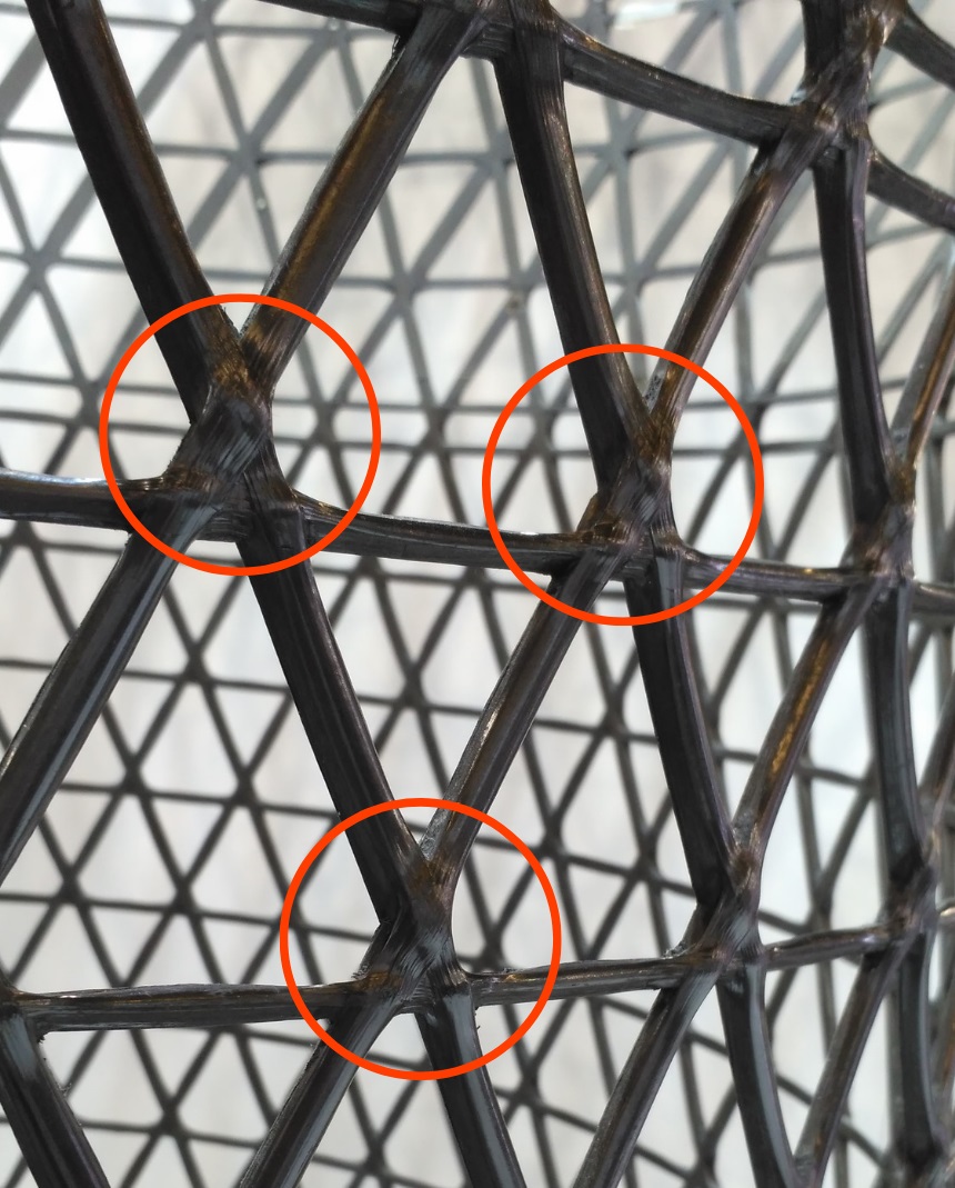 基于预浸料的晶格,显示交叉点处的厚度增加。照片来自Anisoprint。