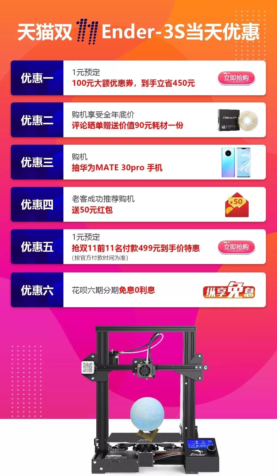 活动规则:分享本篇推文到朋友圈( 设置分组可见取消抽奖资格),然后将分享截图发送至创想三维公众号后台即可参与。活动时间截止到下周四(11月14日)12点结束,11月14日下午统一抽奖。中奖名单会在下周推文中公布,要持续关注哦~
