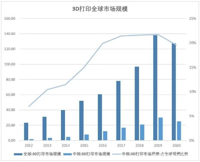 FDM熔融沉积成形技术是20世纪80年代由美国公司开发的,在专利保护期间,该产业发展缓慢。2009年,熔融沉积成型关键技术专利到期,相关设备的成本和售价也大幅降低,行业进入快速发展期。全球涌现出大量相关企业,商品价格不断下降,为其市场普及率的提高奠定了基础。数据显示,专利到期之后桌面级FDM打印机从超过1万美元下降至几百美元,销售数量也从几千台上升至几万台。在国内,也是在此期间,硬件上的专利不再是限制,拿来即用,再加上配套3D打印软件Cura的开源,对于入局3D打印的国内厂商带来了不少便利,主打FDM技术的3D打印机企业如雨后春笋般爆发,直到2013年掀起了一股热潮。随着近10年的努力,3D打印才真正发展成了一个新产业,市场规模达到265亿元,年增长率30%。当然,在这个过程中也是经历了市场优胜劣汰,大浪淘沙般的洗礼。