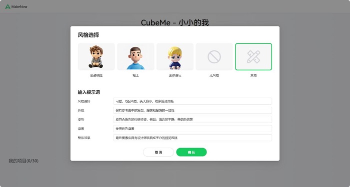“CubeMe-小小的我”是创想三维AI建模平台MakeNow当前主推的AI建模工具,其率先接入腾讯混元大模型,实现了两项革命性功能: